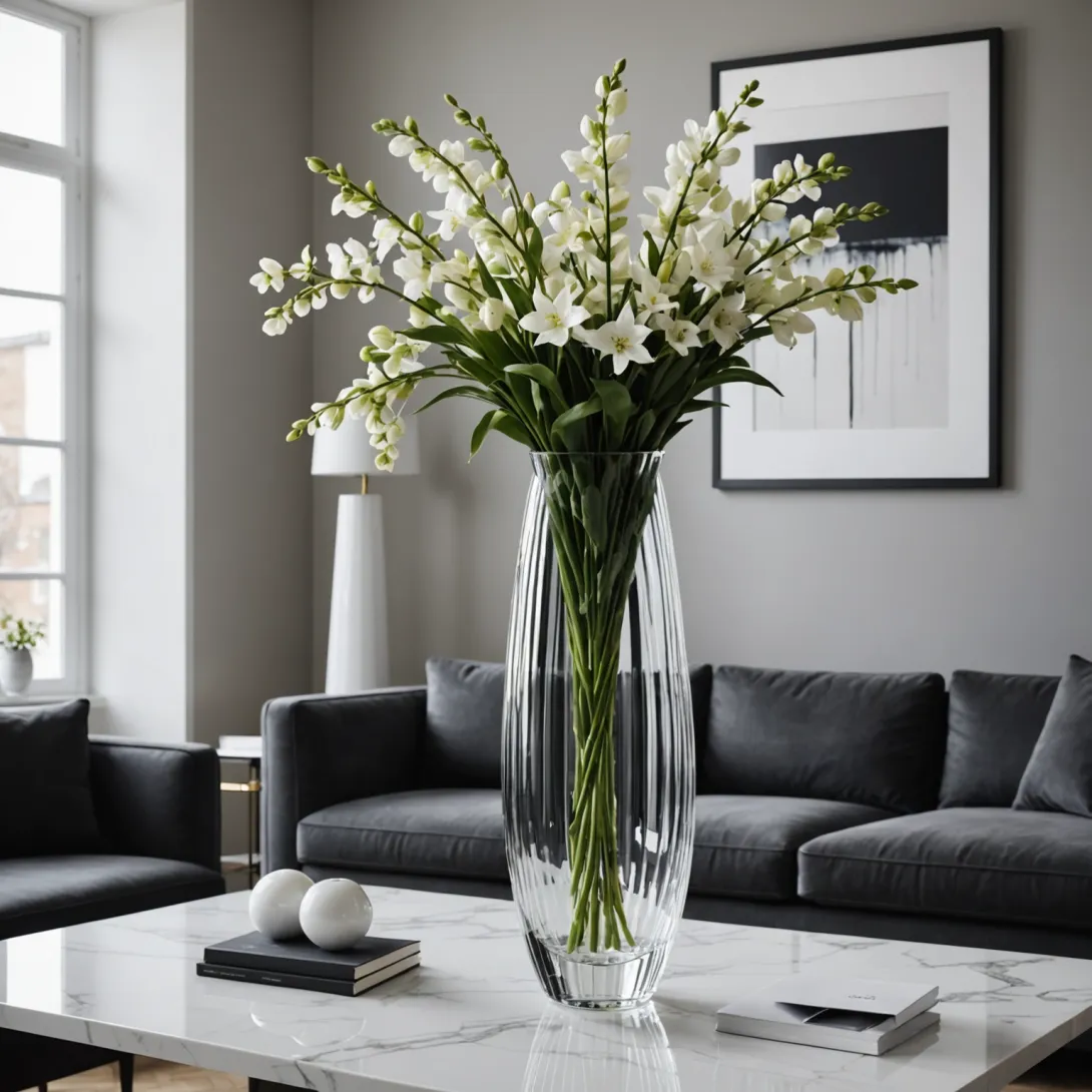 А теперь представьте: вы заходите в комнату, где на видном месте стоит высокая, изящная ваза, которая играет на свету и становится центром визуального внимания. Её высота и форма создают эффектное вертикальное пространство, что особенно важно в помещениях с низкими потолками или ограниченной площадью. Благодаря этому приёму интерьер кажется более просторным и динамичным, а внимание гостей сосредотачивается на деталях, которые говорят о вашем безупречном вкусе.